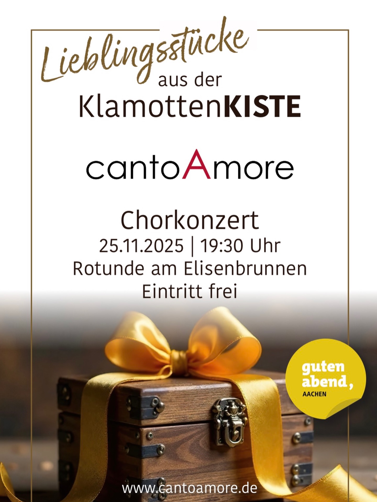 Wir freuen uns außerdem, dass unser Konzert am Internationalen Tag zur Beseitigung von Gewalt gegen Frauen stattfindet – eine Kampagne, die uns am Herzen liegt. Ermöglicht wird der Abend durch den Förderfonds „Guten Abend, Aachen“ der Stadt Aachen, der Kultur in der Stadt sichtbar macht – und hörbar sowieso.
